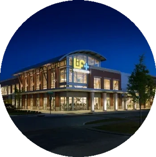 The Lift is an 82,000 square foot fitness facility complete with a state of art workout area, classrooms, offices, gym, walking track, climbing wall, physical therapy clinic, 3 pools, dressing areas, and a medical clinic.